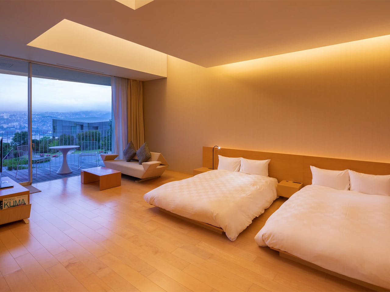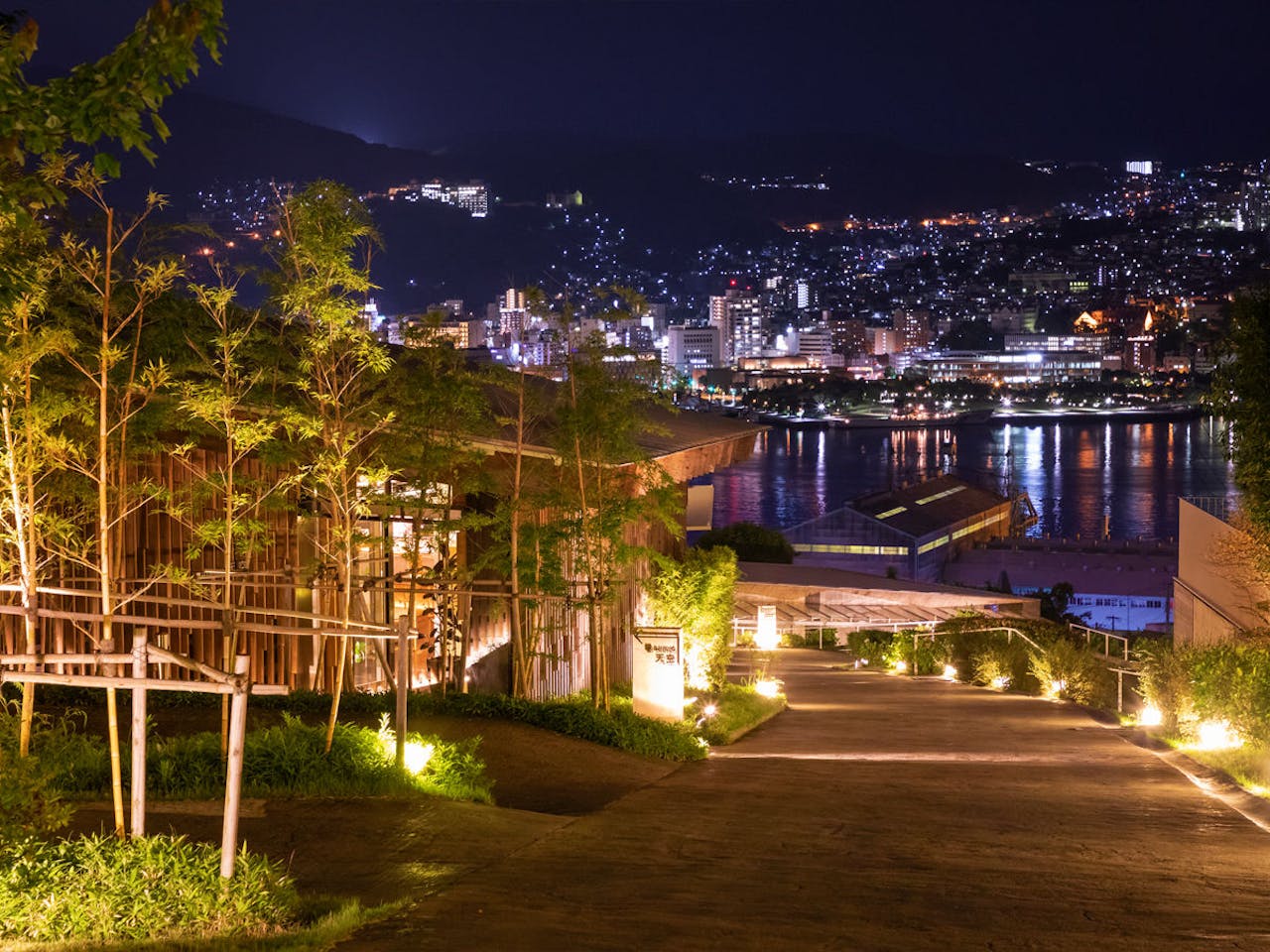 建築家・隈研吾氏がデザインを手がけ、洗練された空間で長崎の夜景を一望できるガーデンテラス長崎ホテル&リゾート。