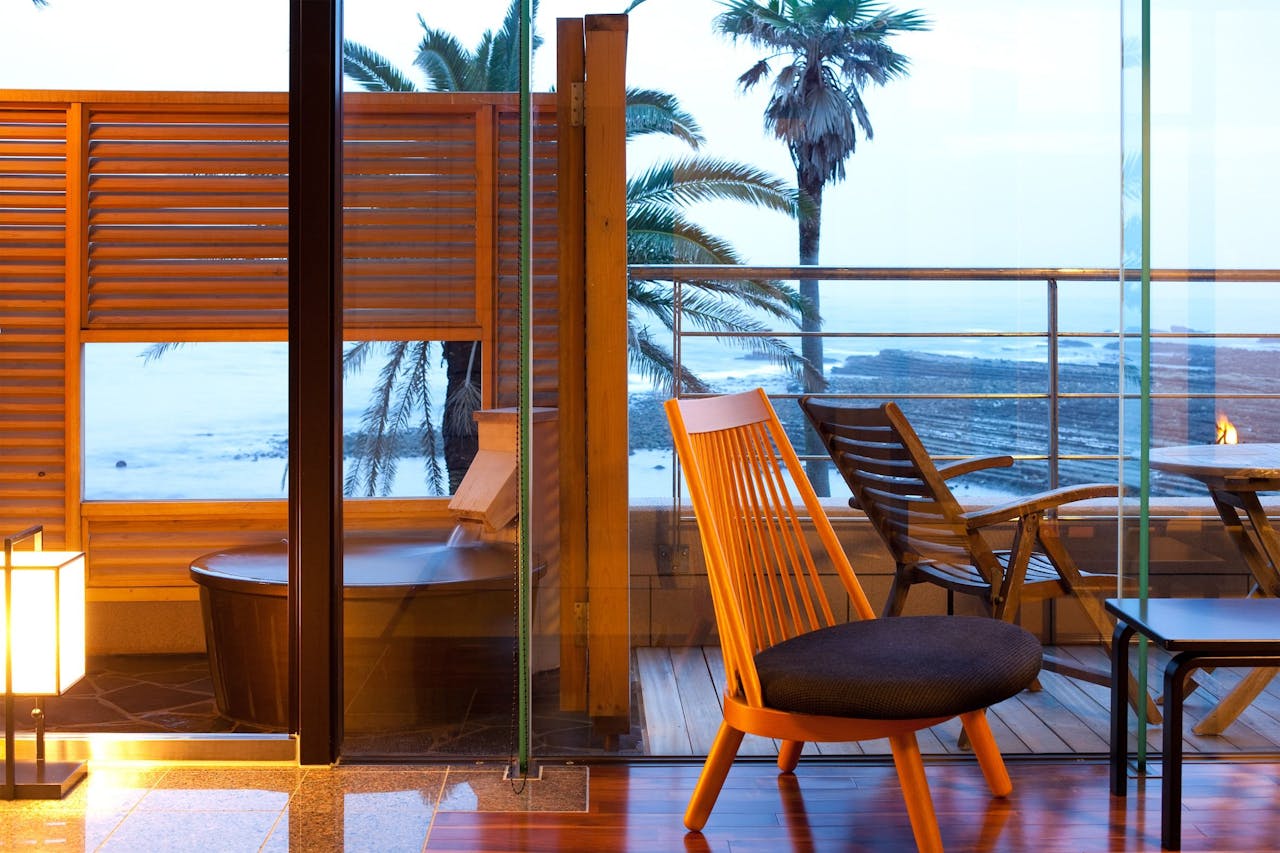 自慢のロケーションを誇るホテル 青島サンクマールは、海はもちろん、“鬼の洗濯板”と呼ばれる波状岩の絶景も拝めます。