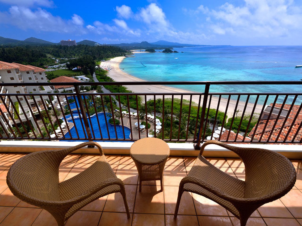 お部屋はスタンダードフロア、クラブフロア、クラブコテージの3タイプがあり、なかでもぜひ宿泊してほしいのがオーシャンビューが叶う客室。ベランダから名護の美しい海が一面に広がる光景が眺められます。