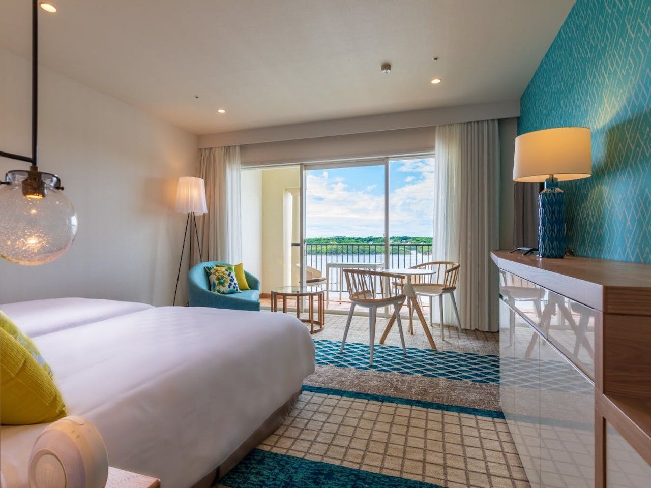 館内に一歩足を踏み入れると、まず出迎えてくれるのは窓一面に広がるキラキラと輝く紺碧の海です。もちろんお部屋も全室オーシャンビューです。
