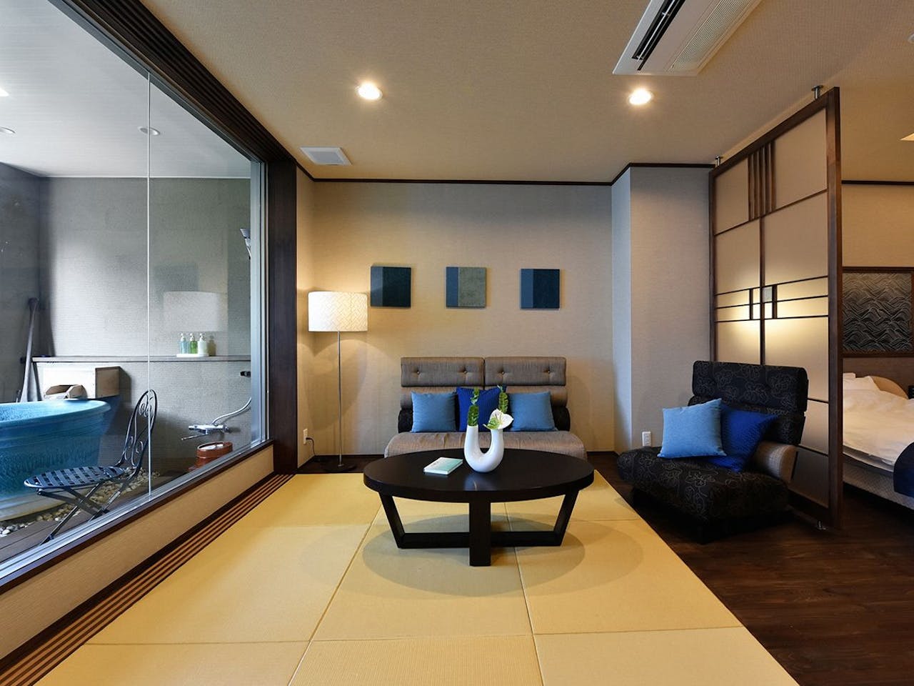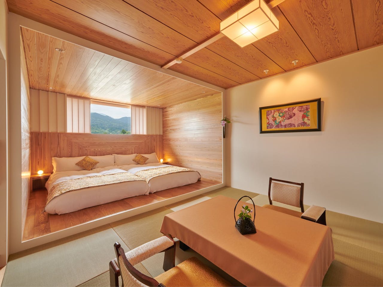 宿泊するお部屋は和モダンを基調とした客室やノスタルジックな数寄屋風の客室などの用意があり、落ち着いた空間が広がっています。